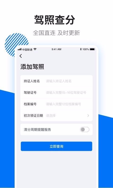 方便快捷的驾照查分方式,只要简单的输入对应的基本信息就能立即点击查询;