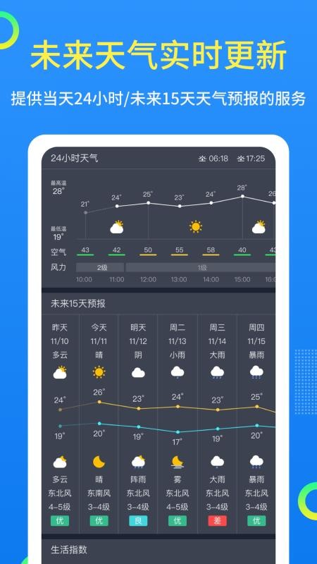未来天气实时更新,让用户清晰的了解天气情况,平台提供优质的服务;