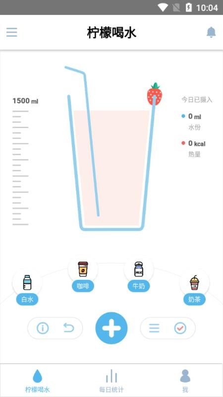 3、进入个人中心,点击加号可以记录喝水信息
