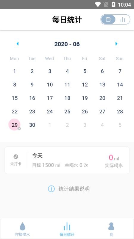 5、进入每日统计页面,可以查看到自己每天的喝水信息