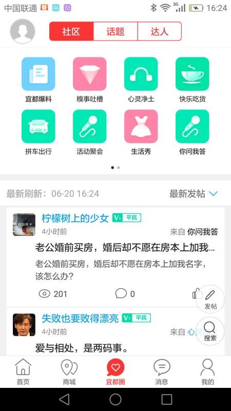 3、点击宜都圈,有宜都爆料、活动聚会、生活秀等