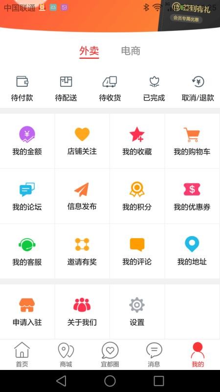 5、点击我的一栏,能够查看金额、收藏、论坛、积分等