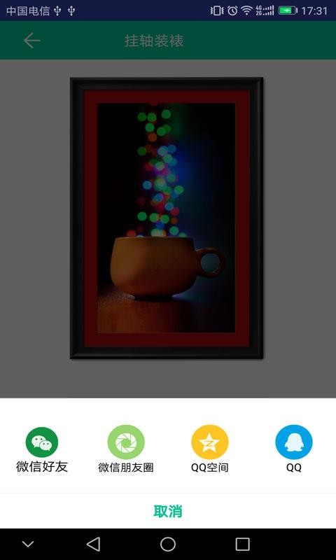 6、点击分享按钮,就可以将装裱后的照片分享给朋友