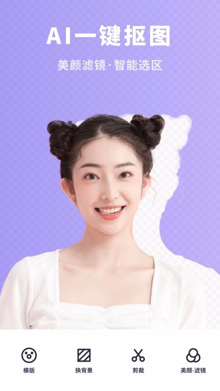 5、拥有丰富的图片编辑工具,该工具栏中提供模板、换背景、剪裁以及美颜和滤镜等工具;