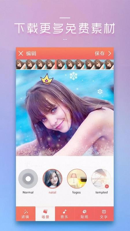 3、提供丰富的编辑工具,编辑页面中设置了滤镜、场景以及音乐等多种工具;