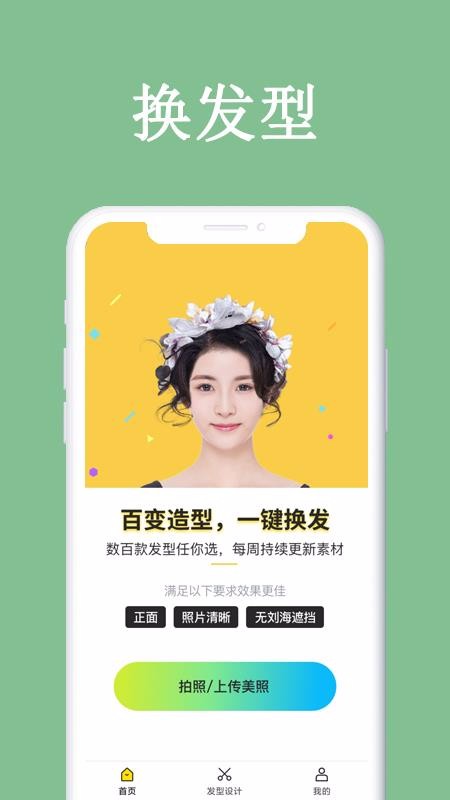 5、贴心的换发型照片上传说明提示,这里为用户展示了照片上传的条件说明标签;