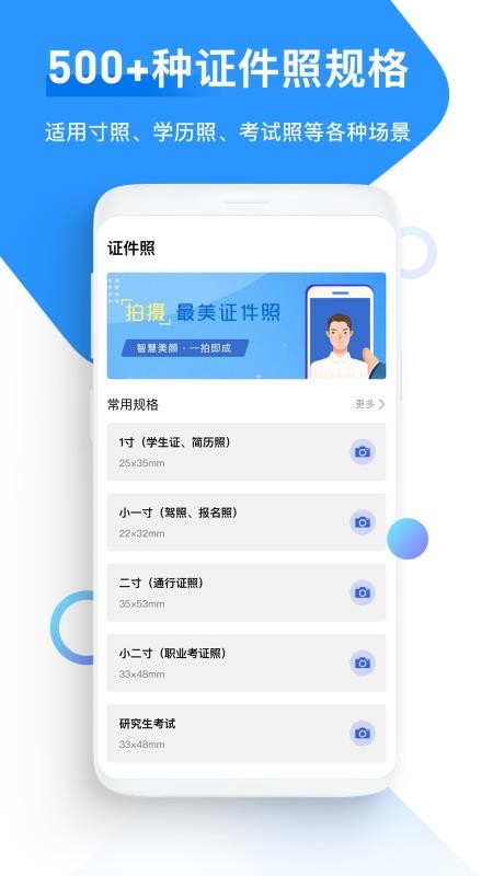 2、支持不同规格尺寸的证件照拍摄,你可以根据自己的需求在这里自由的选择使用;