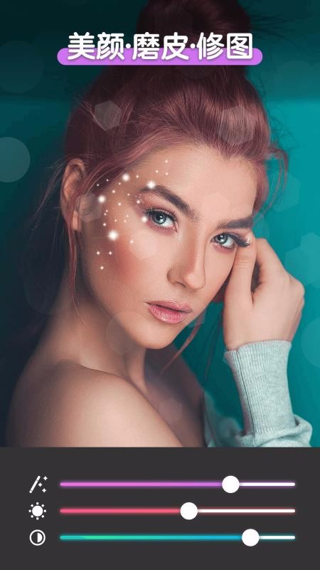 4、调节美颜、磨皮和修图的数值,让照片美化更随意,编辑的内容更符合个人的审美,美化更简单;