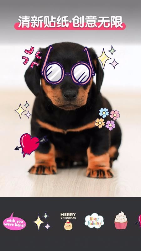 6、众多贴纸随意使用,让贴纸为照片增加活力,提高贴纸的管理能力,使用更便捷,编辑更舒适;