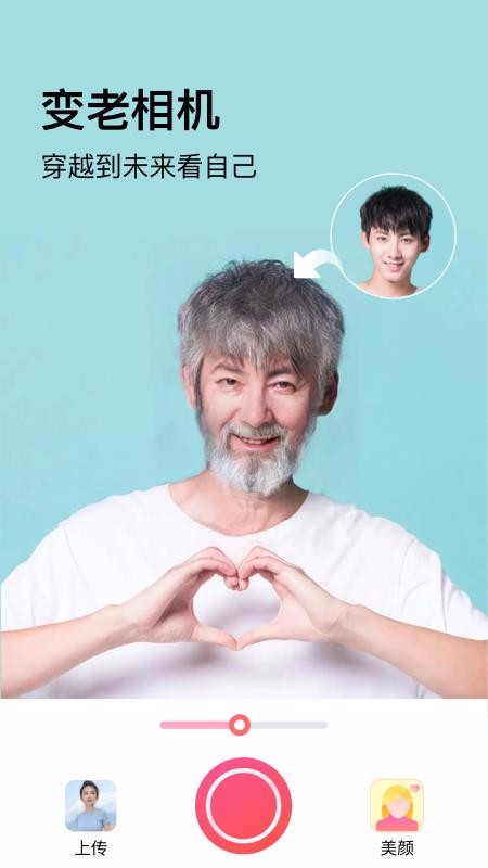 2、提供了变老相机,自行调节变老程度,自动改变脸部、发型颜色等状态;