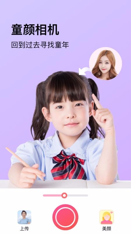 1、提供了童颜相机,一键即可将人物切换成童颜模样,在线可以实现变小;