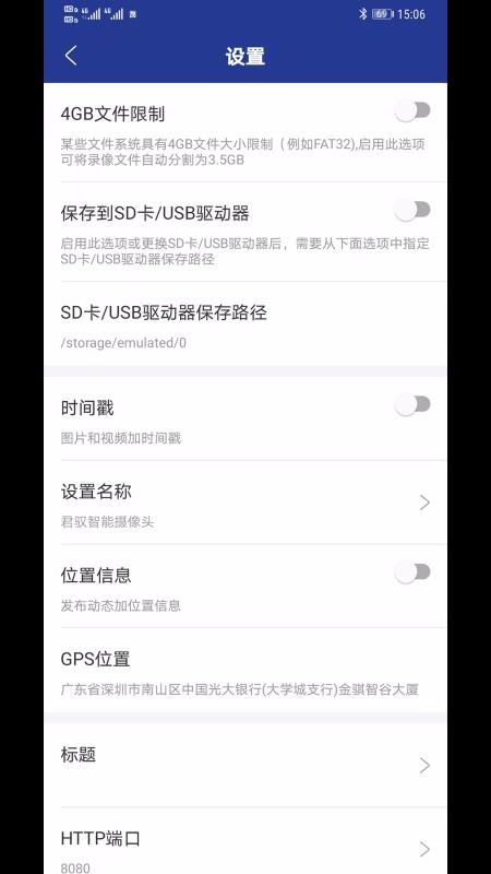 1、丰富的设置功能列表,拥有时间戳、位置信息、标题以及文件限制等功能;