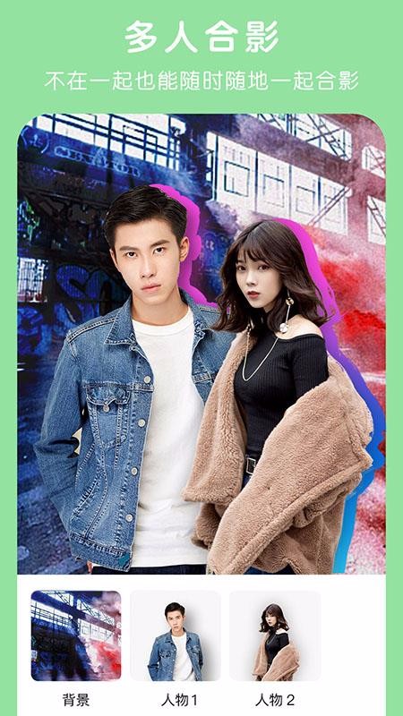 4、进入多人合影页面,选择背景、人物1、人物2等进行相应的操作