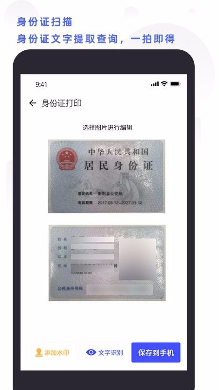 5、设置了丰富的打印预览功能,该打印预览页面中有添加水印、文字识别和保存到手机功能标签;