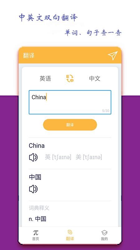 2、在线翻译,提供英汉、汉英双向翻译的功能,随时输入单词翻译;