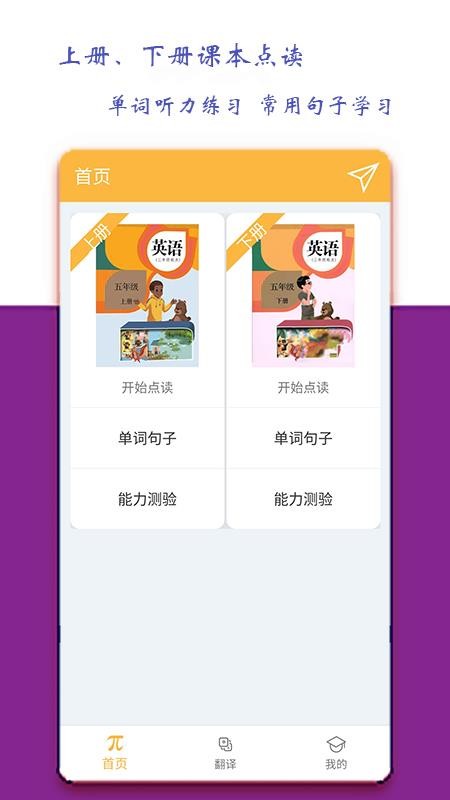 小学五年级英语派是一款配套英语学习软件,与小学五年级英语课本配套学习,提供五年级英语的上下册内容,可以在线查看电子课本信息,还提供点读的功能,支持随时在线点读,立即播放点读的英语内容,包括常用的句子、单词等,能够在线学习纯正的英语,了解孩子的语音听力和发音;还可以使用软件进出单元测试,结合学校课堂上课的情况,及时检测孩子本单元学习掌握的情况,了解学习补充的地方,及时查缺补漏;同时还提供期中检测的功能,可以进入其中检测页面,结合提供的检测题目,立即在线测试,了解学习的情况。