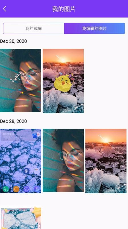 5、自动保存编辑过的图片,按照时间进行排序和展示,方便用户的查找;