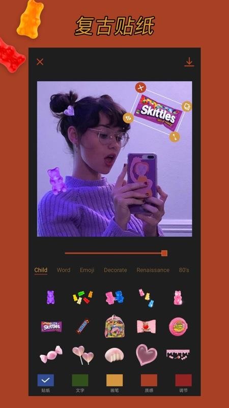1、使用复古贴纸,展示图片的个性,可以随意的进行使用;