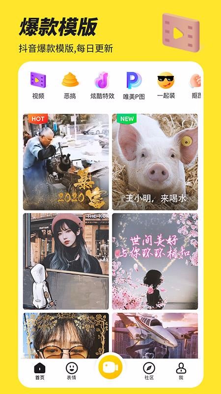 1、每日更新抖音爆款模板,分类展示各类模板资源,并且免费使用;
