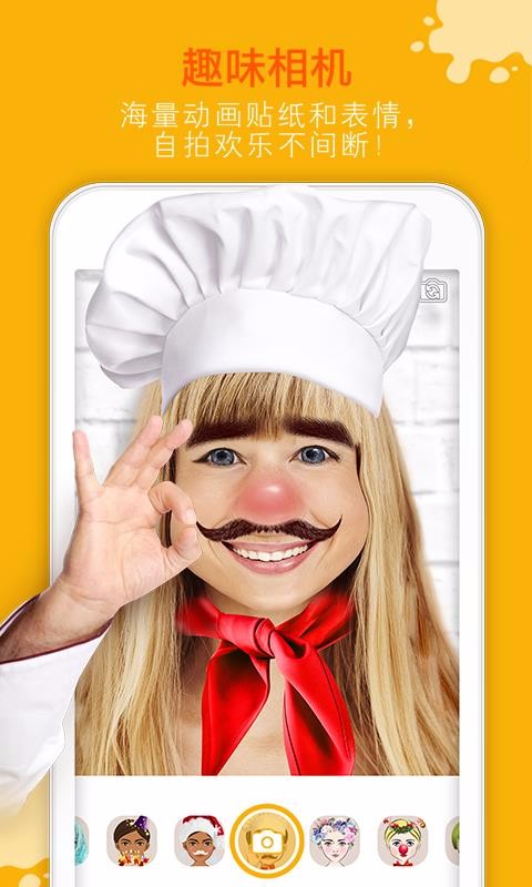 玩美 Fun是一个趣味贴纸相机软件,提供多种丰富的趣味相机模板,支持切换各种动态形象并拍摄特别的照片;里面拥有非常多的动物表情模板,地球上各种动物造型都有,包括狸猫、蝴蝶以及熊猫等多种动物,只要点击这些动物造型就能立即查看脸上的动物造型修改效果,满意的话马上就能拍照保存该图片;除了动物造型外还有许多不同的场景照片模板,可以将自己的照片放到一本书的封面中,然后放在桌上,也可以将照片切换到老照片相框或黑白电视里面,营造出特殊氛围的照片效果,得到照片后就能分享给自己的好友。
