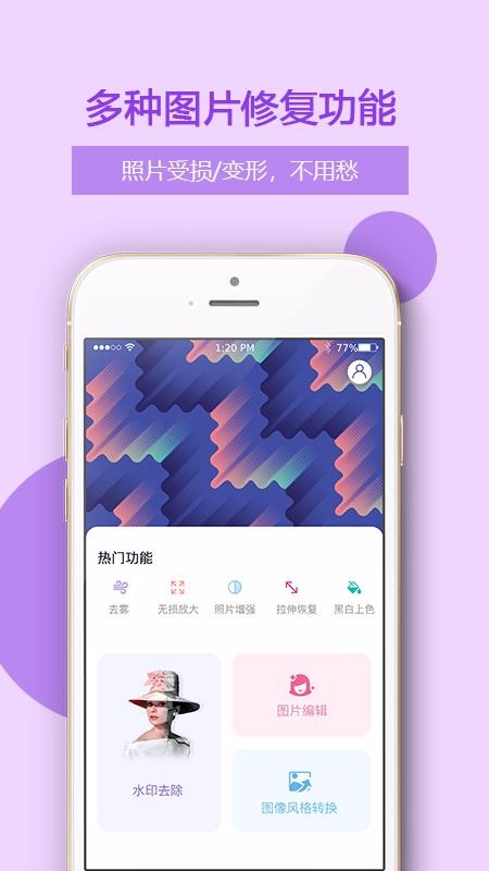 图片处理app是一款功能强大的图片编辑工具,提供了去雾、无损放大、黑白上色、拉伸回复等功能,它能够在不影响图片质量的情况下进行像素放大,对一些老照片修复有很大的帮助,其次,图片处理app还具有上色功能,可以将黑白色的图片换成不一样的色调,让整张照片看上去都焕然一新,另外,照片如果出现了变形、受损等情况,也无需发愁只需要点开修复功能即可完成。