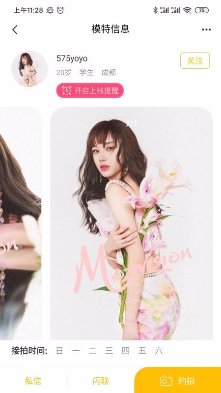 5、与模特私信交流,便于快速完成合作,提高约拍的成功率;