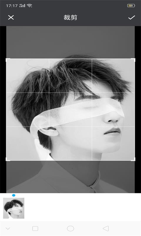 3、进入照片裁剪页面,双指拖动裁剪框即可任意的进行编辑