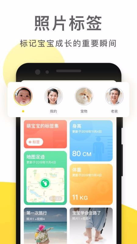 1、将宝宝的身高体重记录,每月成长里程碑提醒,追踪宝宝的成长状况,让爸妈更加省心;