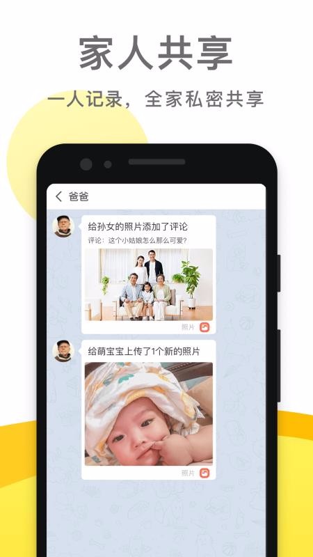 3、可以邀请家人加入到软件,一人记录,全家分享,家人也可以随时随地查看宝宝的照片;
