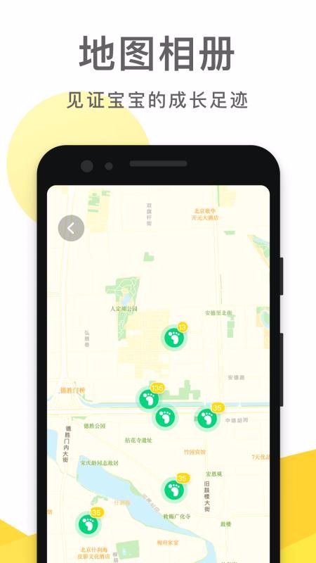 2、软件会自动定位照片的拍摄的位置,在一张地图上显示宝宝的成长足迹,制作地图相册;