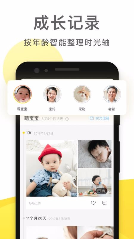 1、软件会根据照片的时间自动整理排序,自动换算宝宝的年龄,制作宝宝的时间轴照片;