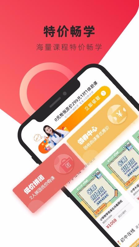 6、众多课程优惠,不仅为用户提供平台专属价,同时还有低价拼团以及领券中心等优惠;