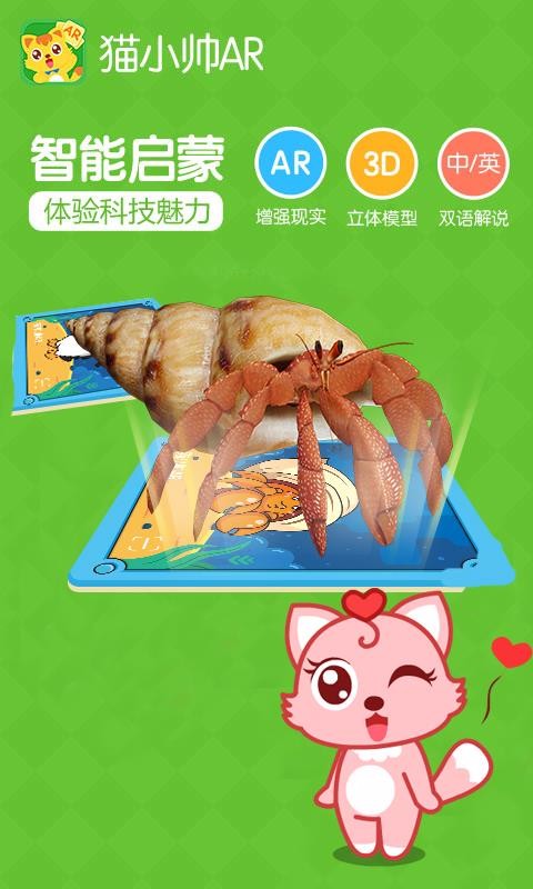 猫小帅AR是一个早教学习平台,主要帮助儿童学习和认识各种动物,也通过AR增强现实技术,让各种动物出现在孩子的掌中,并结合3D模型,让孩子查看立体的动物外观,还可以实现虚实合影,从而激发孩子的想象力、思考力和认知能力;所以,想要让孩子实现沉浸式学习,就可以通过该平台进行实现,也通过科技的魅力,让儿童体验一个充满想象力的课堂,随时随地通过手机学习,轻松了解各种动物信息和动物外观,也让科技帮助孩子成长;除此之外,还可以让家长引导孩子学习,随时掌握孩子的学习情况,也可以管控孩子的学习时间,让孩子健康学习。