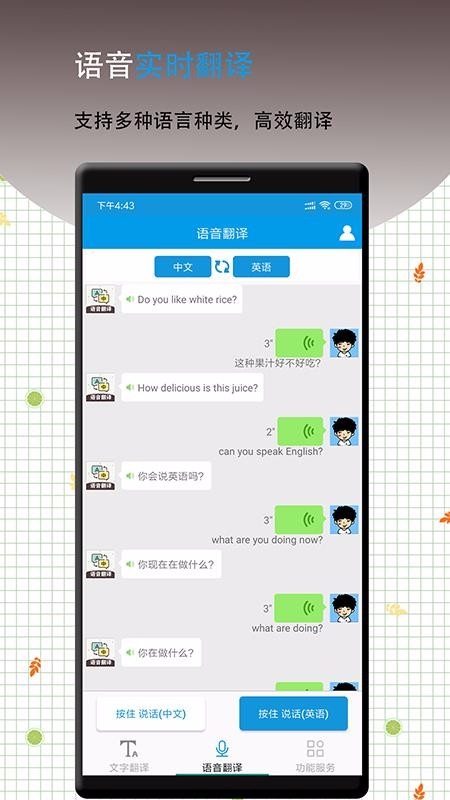 2、便捷的语音交互翻译模式,该翻译中心以对话形式提供高效的翻译体验;