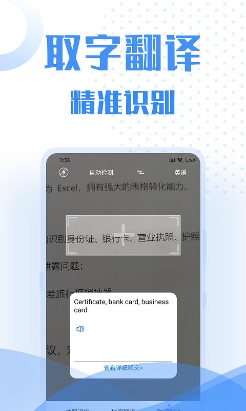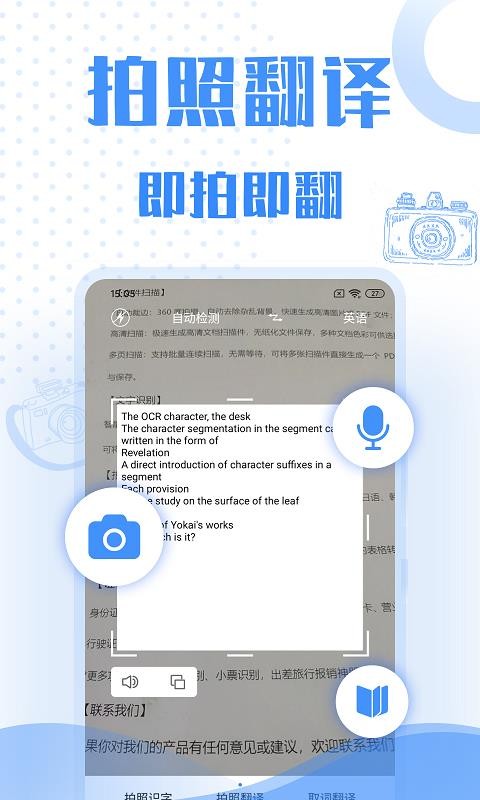 4、在线使用拍照的方式翻译,立即拍照识别图片中的信息,在线轻松翻译;