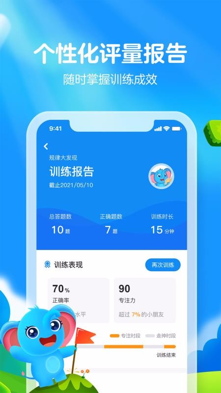 5、丰富的训练报告内容,训练报告中展示答题总数、正确题数以及训练时长等信息;