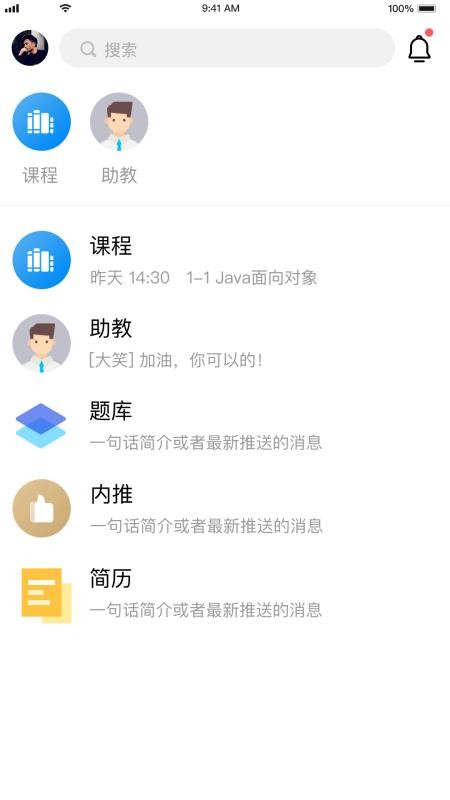 优课达app是一款可以在线学习编程的手机软件,为用户提供了助教服务,可随时与助教进行在线沟通,让他更好的帮助您解决各种学习问题,能高效的进行学习。随时在线查看课程内容,对课程有一个清晰的了解,让您在学习的时候更加轻松,在线即可对简历进行修改,让您的简历变得更加优秀,平台还提供各种内推岗位,拥有更多的选择,还为用户提供了海量的题库,学习各种知识,快速的提升自己,可通过阅读与刷题的方式相结合,让您的学习更加高效,也能对各种知识快速的进行掌握,赶快下载软件试试吧。