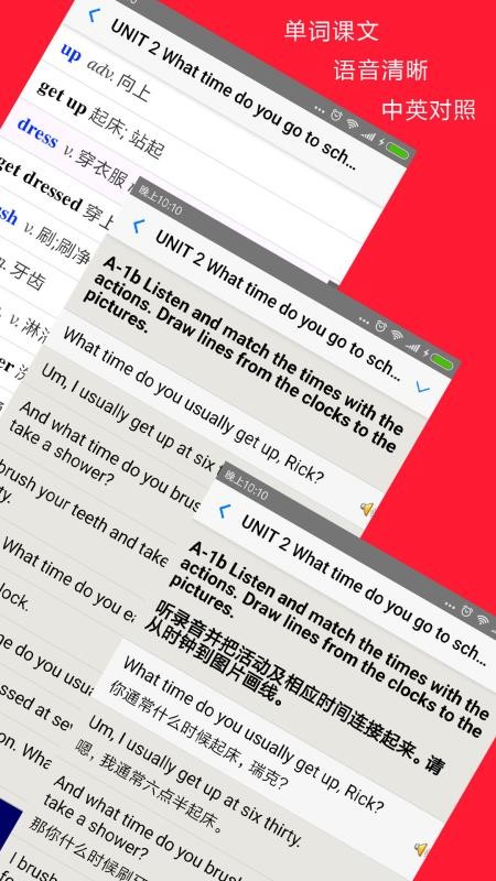 2、提供课文译文,帮助用户了解更多的英语信息,快速的进行学习;