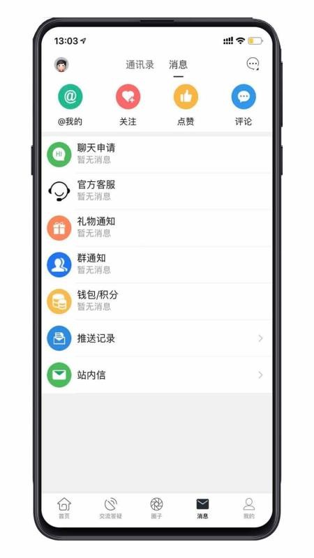 6、拥有消息版块,用户可以看到自己的各种未读消息和互动信息,方便用户了解;