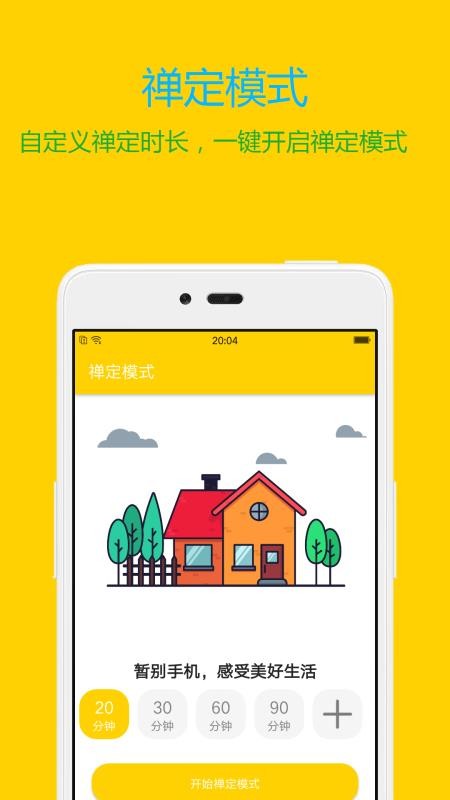 6、自定义禅定的时长,设置有20分钟、30分钟、60分钟等时长的信息;