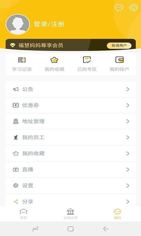 5、在我的页面,实时查看学习记录、收藏和账户的信息,阅读学习公告