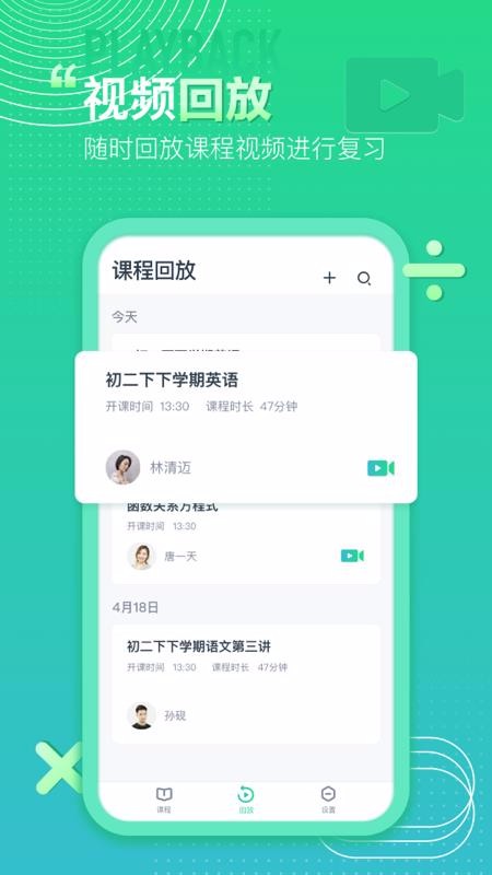 5、支持课程回放,自动保存上课记录,随时可以观看回放课程进行复习;