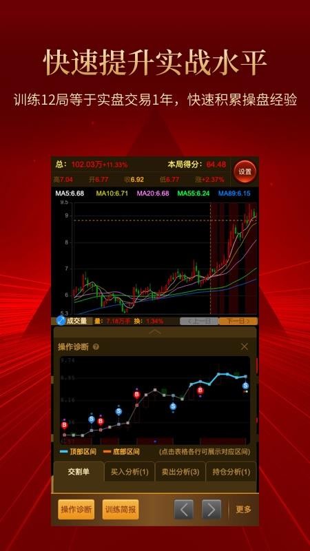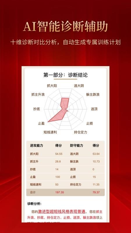 1、智能诊断,向用户展示了模拟炒股的诊断结论,可自由的查看;
