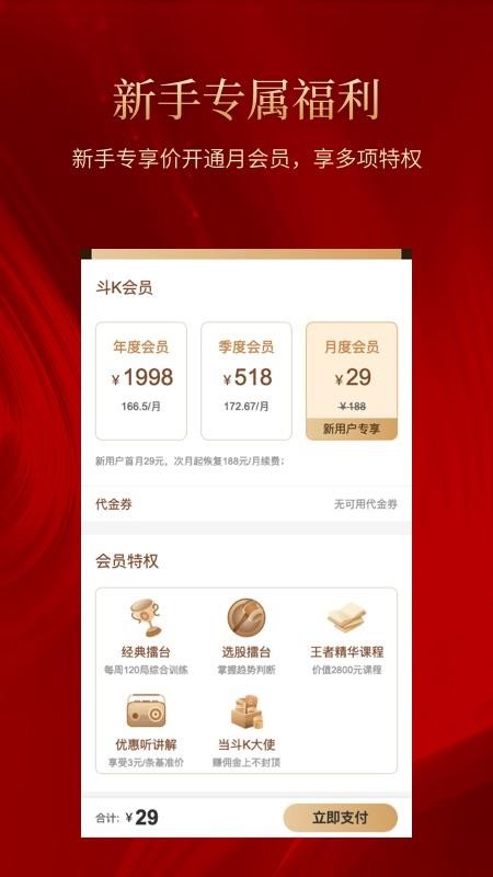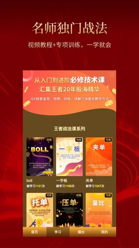 斗K是一款非常好用的在线学习软件,主要为用户提供炒股知识的学习服务,它拥有海量的炒股课程,从入门到进阶应有尽有,每一个课程都融合了多名炒股专家的毕生经验,用户可以快速的选择观看,能够轻松学习到专业的炒股技巧,帮助用户提升炒股能力,早日成为炒股达人;除了各种各样的视频课程以外,该应用还拥有炒股模拟板块,为用户模拟了一个逼真的在线股市,用户可根据学习到的炒股知识,快速的在模拟股市中进行买卖,轻松即可累积炒股经验,让用户做好实际炒股的准备;想要学习炒股的朋友赶快下载体验吧。