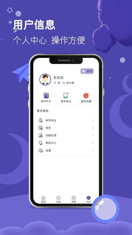 5、打开个人中心,快速发布各种课后作业内容,更轻松的和家长进行联系沟通