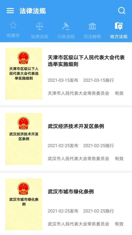 5、按照不同的地区来展示最新的地方法规,支持在线轻松便捷的搜索查找;