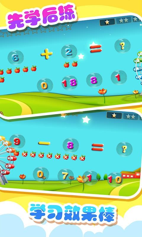 3、有减法练习,在线就能够不断的进行学习,让孩子能够快速的使用;