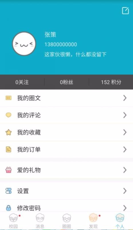 6、提供简答实用的个人中心功能列表,该列表中拥有我的圈文、我的评论和我的收藏等管理功能;