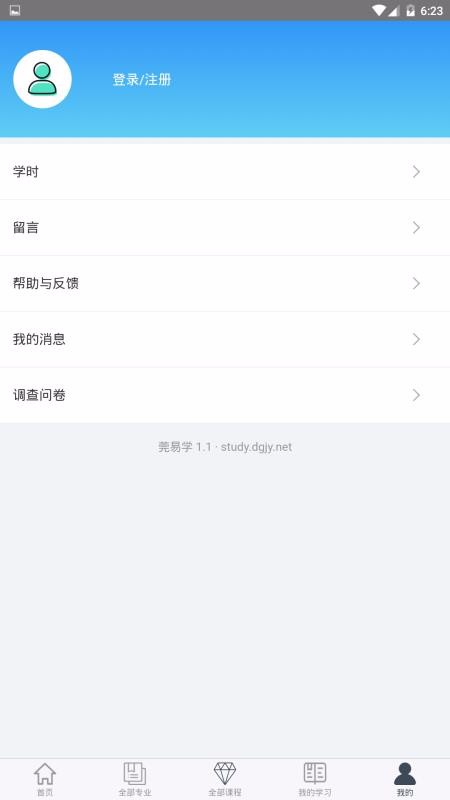 5、丰富的个人中心功能列表,在我的主页为用户提供学时、留言以及我的消息等功能;