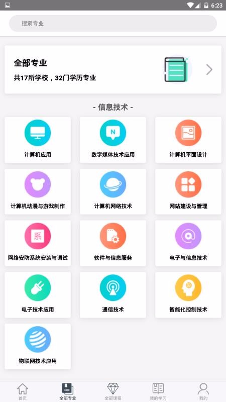 3、更多专业分类选择,全部专业里面还为用户划分多种专业版块,涵盖信息技术等;